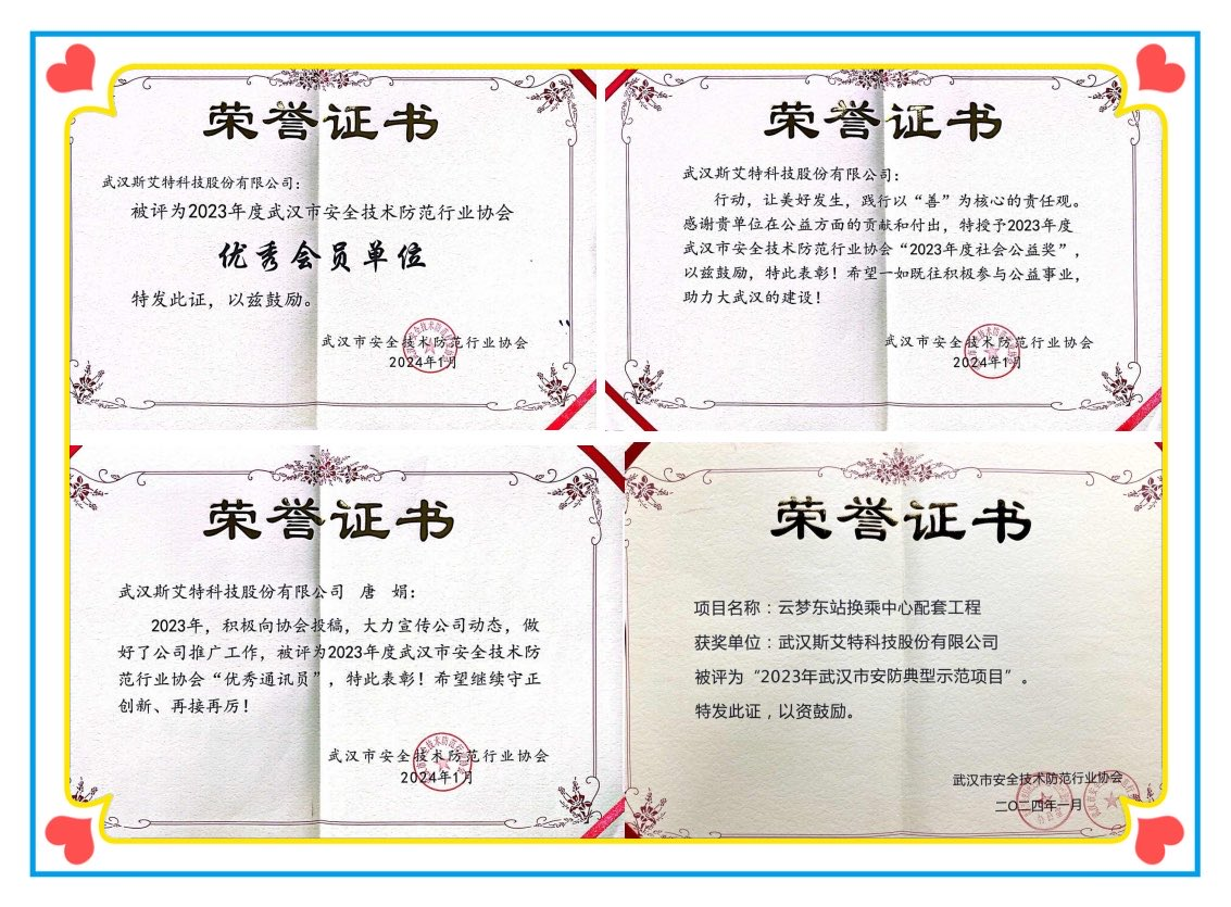 以上獎(jiǎng)項(xiàng)的獲得體現(xiàn)了行業(yè)協(xié)會(huì)對(duì)我司在參與支持協(xié)會(huì)工作方面的肯定、在參與社會(huì)公益事業(yè)方面的贊譽(yù)、在行業(yè)內(nèi)專業(yè)水平的認(rèn)可。我司將繼續(xù)堅(jiān)持黨建引領(lǐng)、堅(jiān)定踐行企業(yè)使命和責(zé)任感、堅(jiān)守行業(yè)自律、堅(jiān)持科技創(chuàng)新,爭(zhēng)取為湖北安防行業(yè)發(fā)展作出新的貢獻(xiàn)。