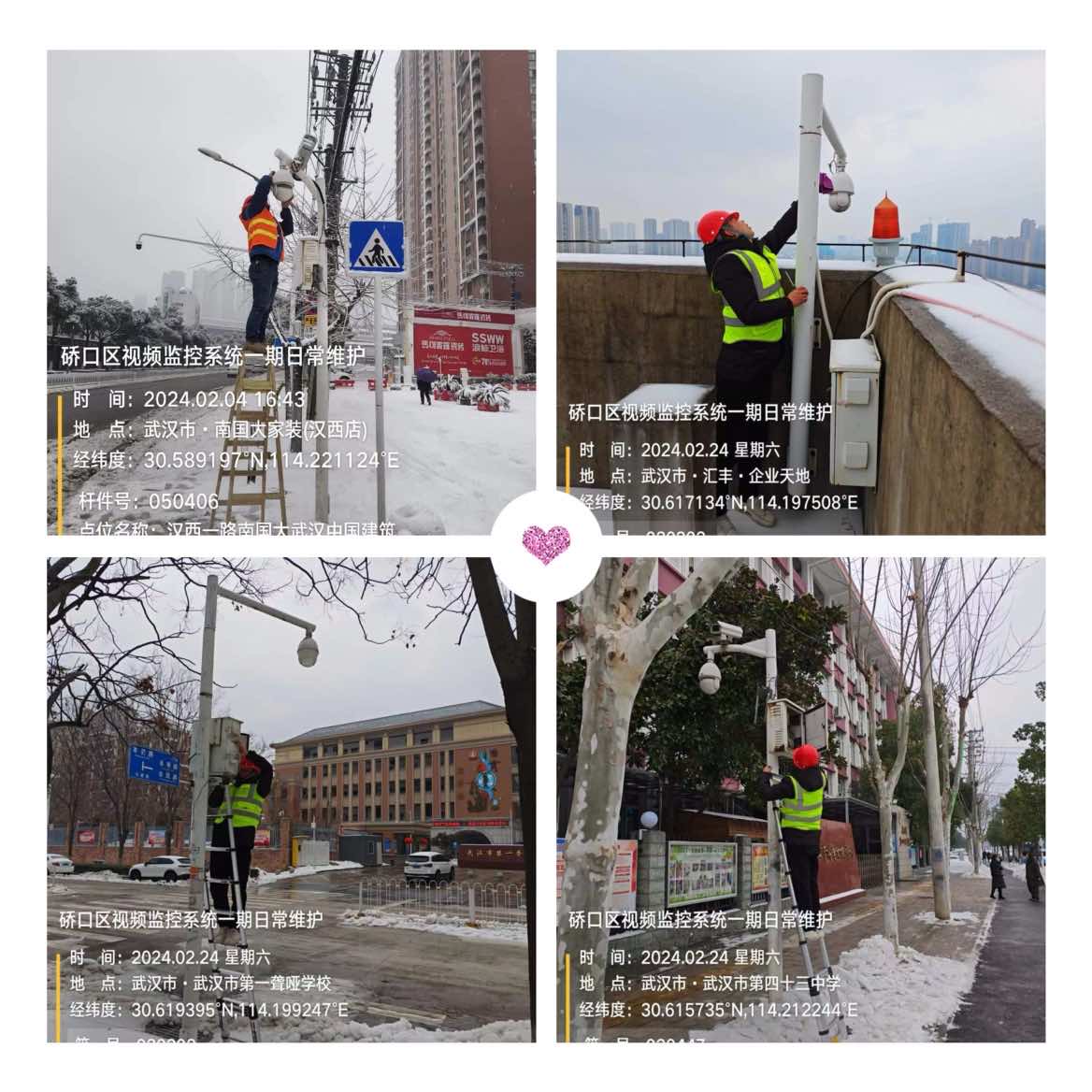 為應(yīng)對春節(jié)前凍雨對前端設(shè)備造成的破壞、確保城市視頻監(jiān)控系統(tǒng)發(fā)揮春節(jié)時期保平安的作用,公司運維服務(wù)部硚口城市視頻運維服務(wù)組在春節(jié)期間無一人休息,全部堅守崗位對前后端設(shè)備進(jìn)行檢修維修。為應(yīng)對開工后新一場凍雨且臨近新學(xué)期開學(xué),公司運維服務(wù)部立即加派人手對校園周邊視頻監(jiān)控點及轄區(qū)高點監(jiān)控逐一檢查維修,為校園周邊環(huán)境安全順利開學(xué)、為政府掌握除雪進(jìn)度及道路暢通情況提供技術(shù)支撐。