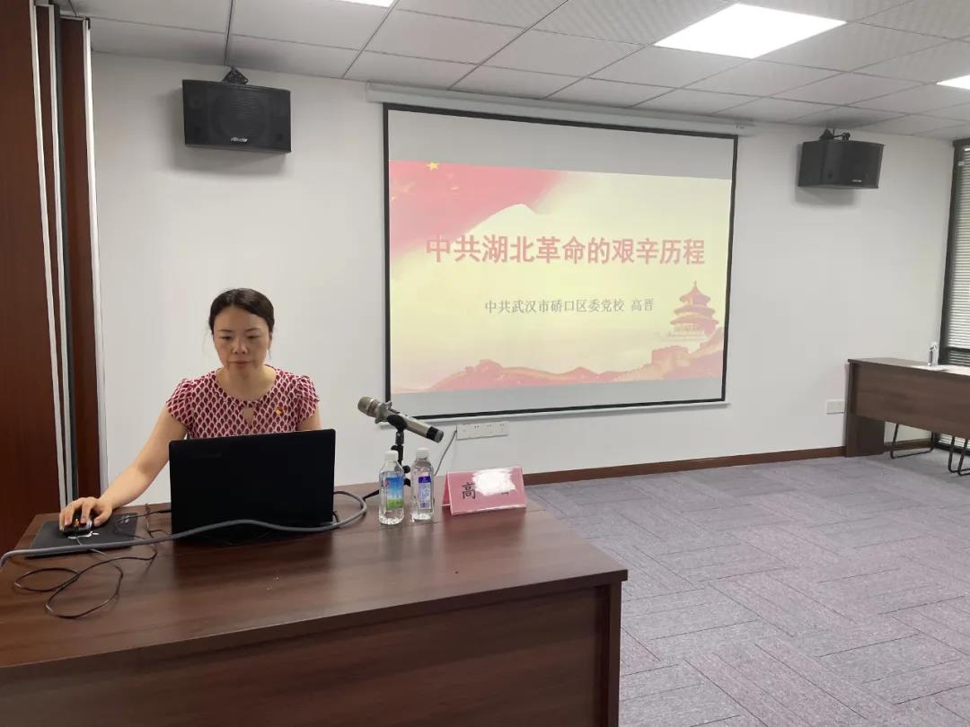 最后由區(qū)委黨校講師高晉作專題輔導(dǎo)報告。高老師為我們講授了《中共湖北革命的艱辛歷程》,以“我們黨的一百年,是不忘初心、牢記使命的一百年,是篳路藍(lán)縷、奠基立業(yè)的一百年,是創(chuàng)造輝煌、開辟未來的一百年”為開端,內(nèi)容生動詳盡,為我們再現(xiàn)了一段輝煌的百年革命歷史。