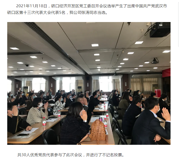 張濤同志當(dāng)選黨代表將參加 中國共產(chǎn)黨武漢市硚口區(qū)第十三次代表大會