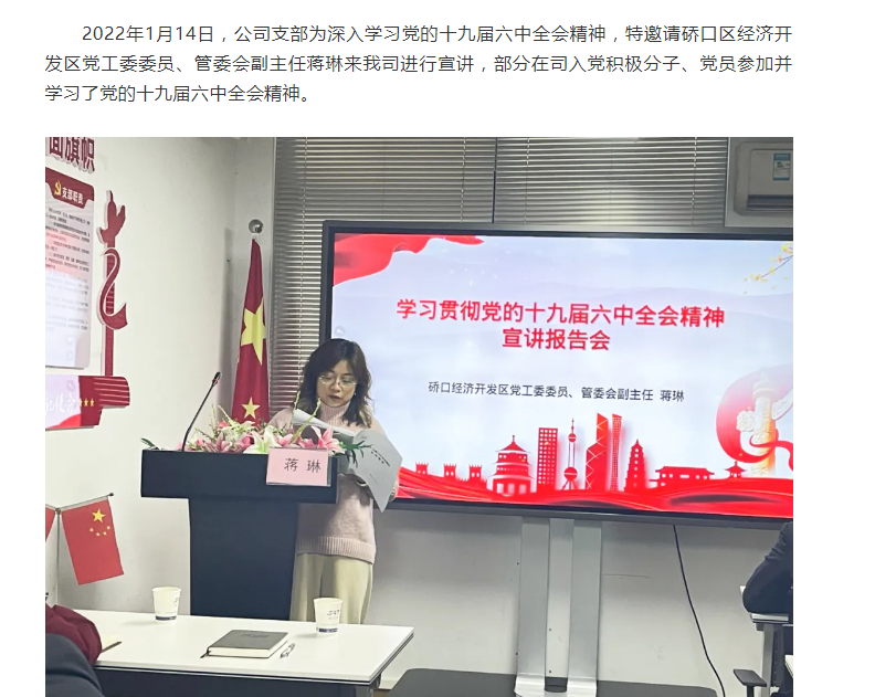 公司支部組織學(xué)習(xí)貫徹黨的十九屆六中全會(huì)精神