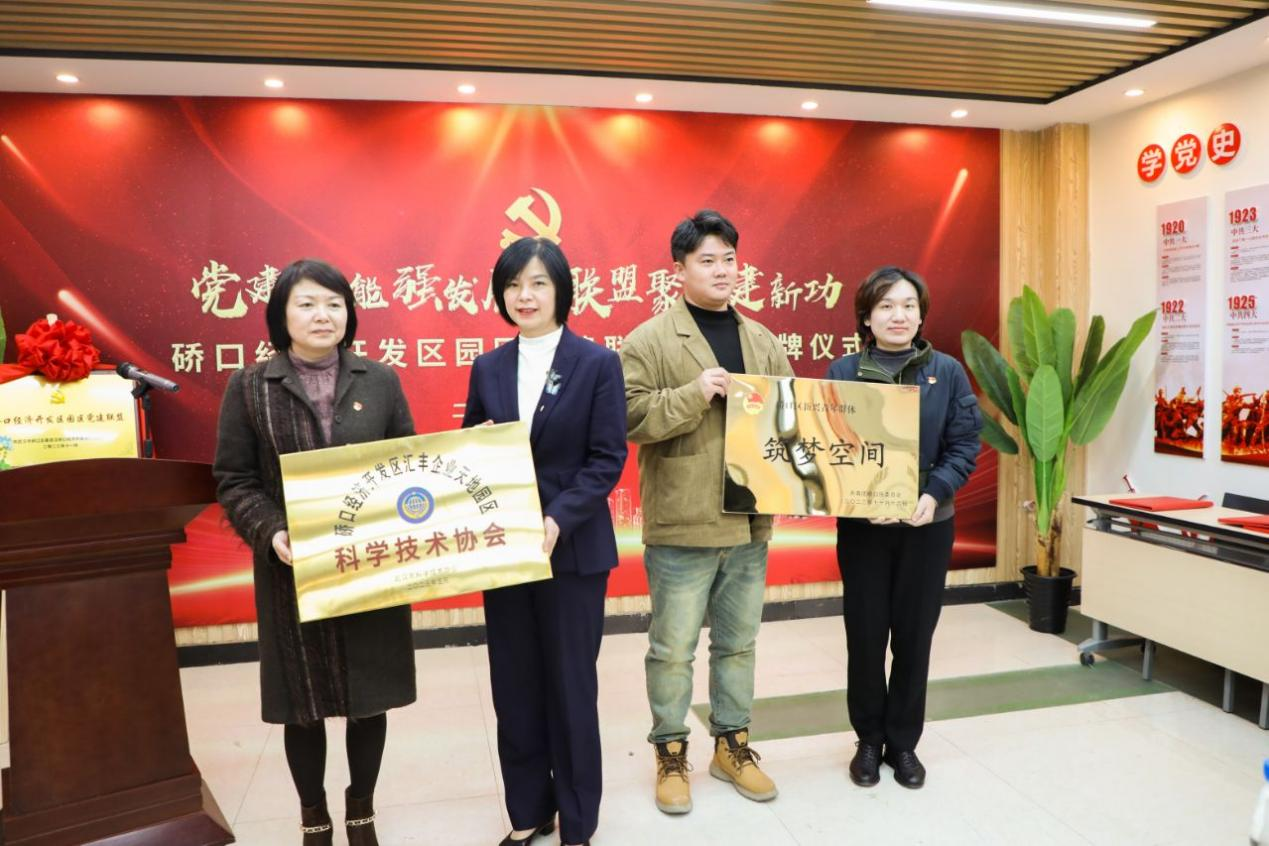 區(qū)科協(xié)、團(tuán)區(qū)委分別為硚口經(jīng)濟(jì)開發(fā)區(qū)匯豐企業(yè)天地園區(qū)科協(xié)、硚口區(qū)新興青年群體筑夢(mèng)空間授牌,進(jìn)一步加大園區(qū)科技創(chuàng)新力度,為園區(qū)發(fā)展注入青春活力。金東方實(shí)業(yè)(武漢)集團(tuán)股份有限公司當(dāng)選為硚口經(jīng)濟(jì)開發(fā)區(qū)匯豐企業(yè)天地園區(qū)科協(xié)主席單位,我司當(dāng)選為副主席單位。
